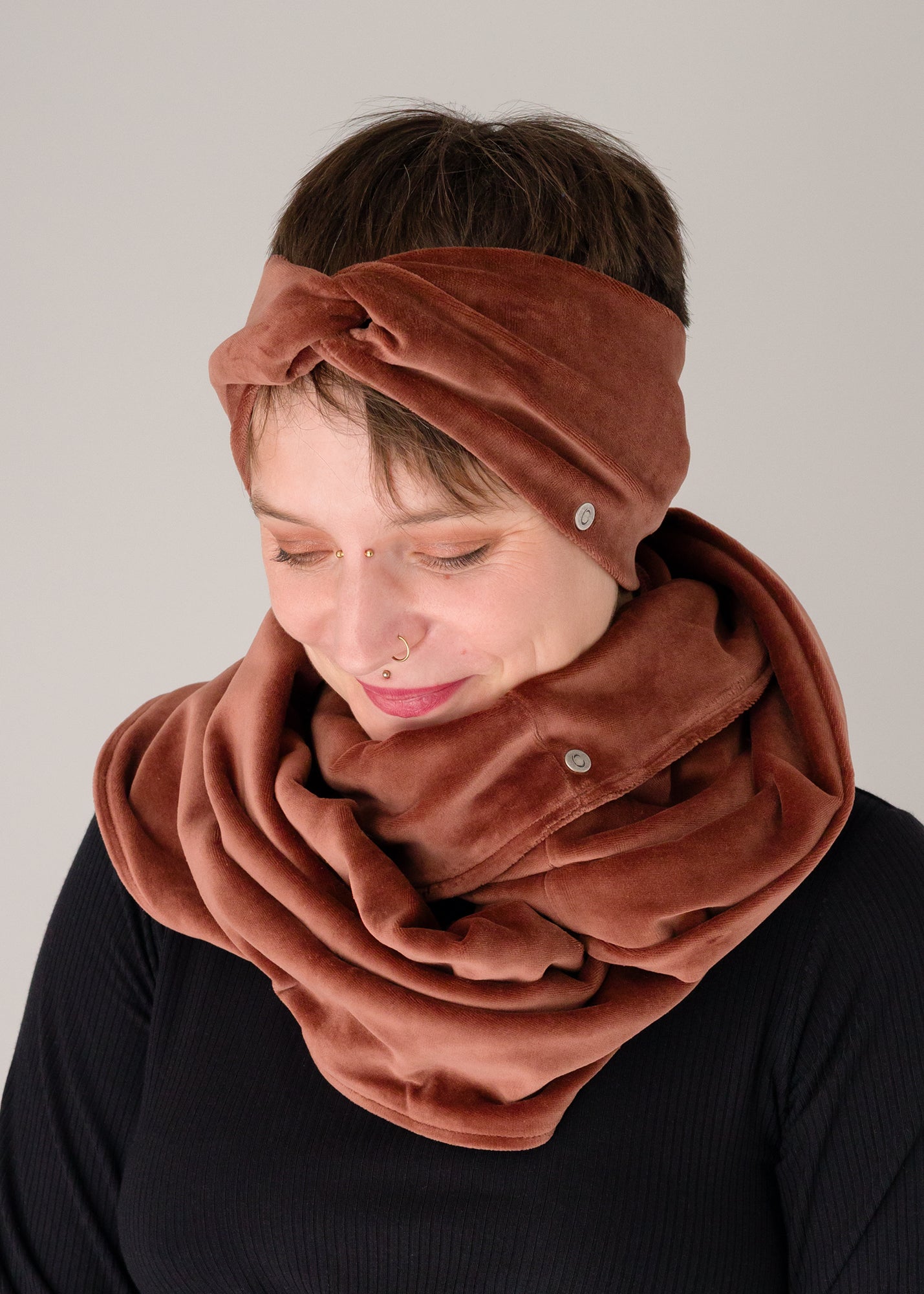 Loopschal aus weichem Velvet-Stoff.