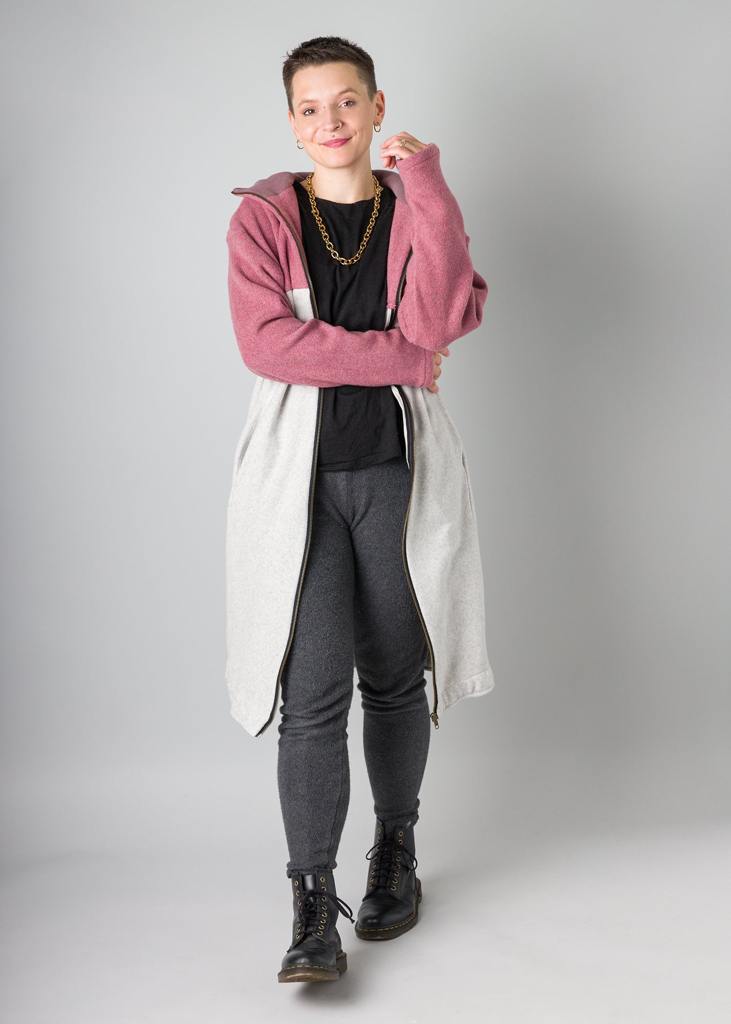 Karla | Lange Zipp-Jacke mit Kapuze | individualisierbar