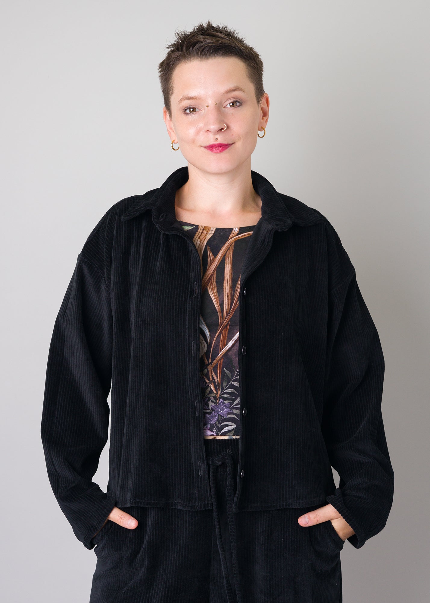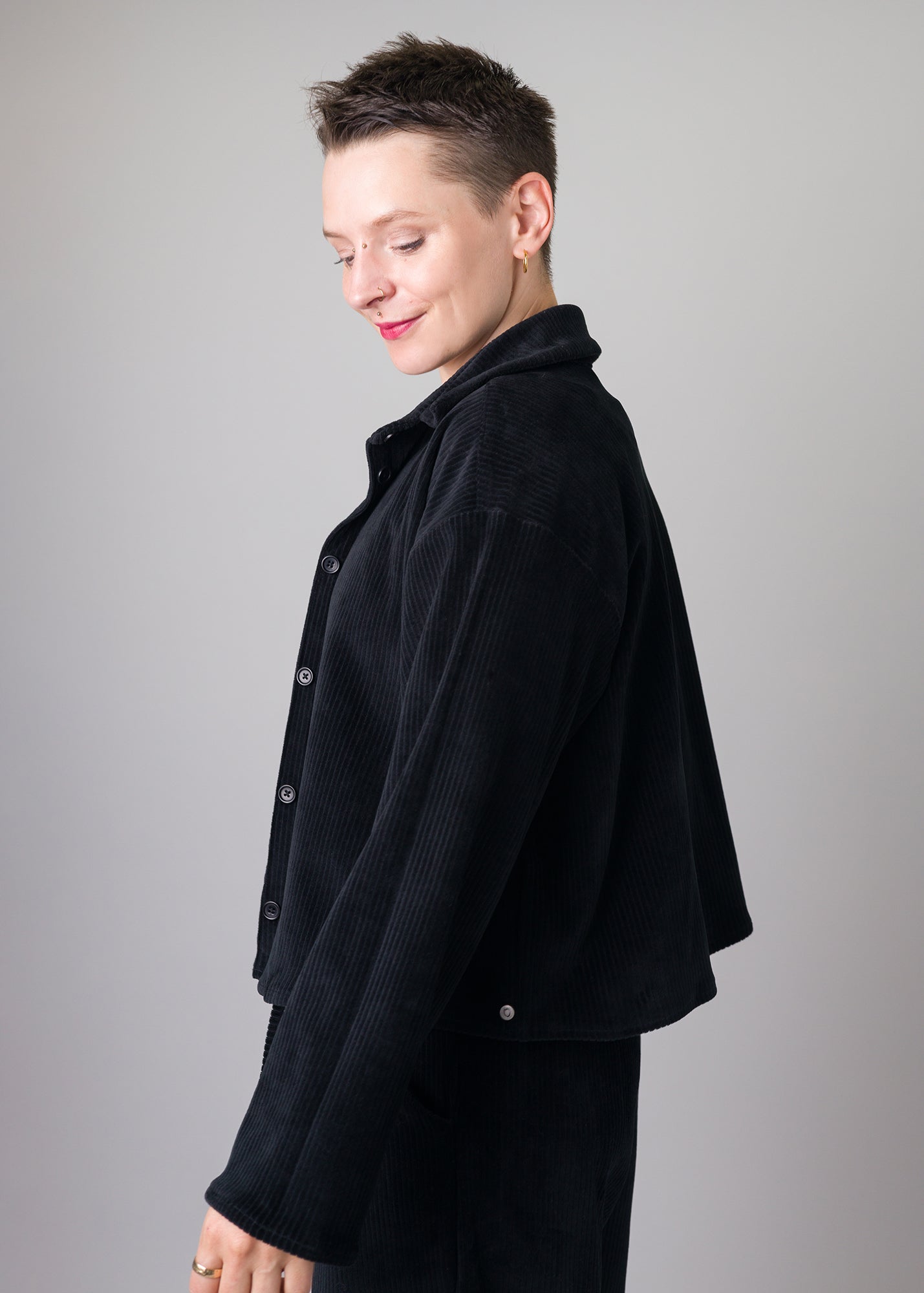 Knopfleiste: Praktisch und stilvoll – ermöglicht individuelles Styling, offen oder geschlossen getragen.
