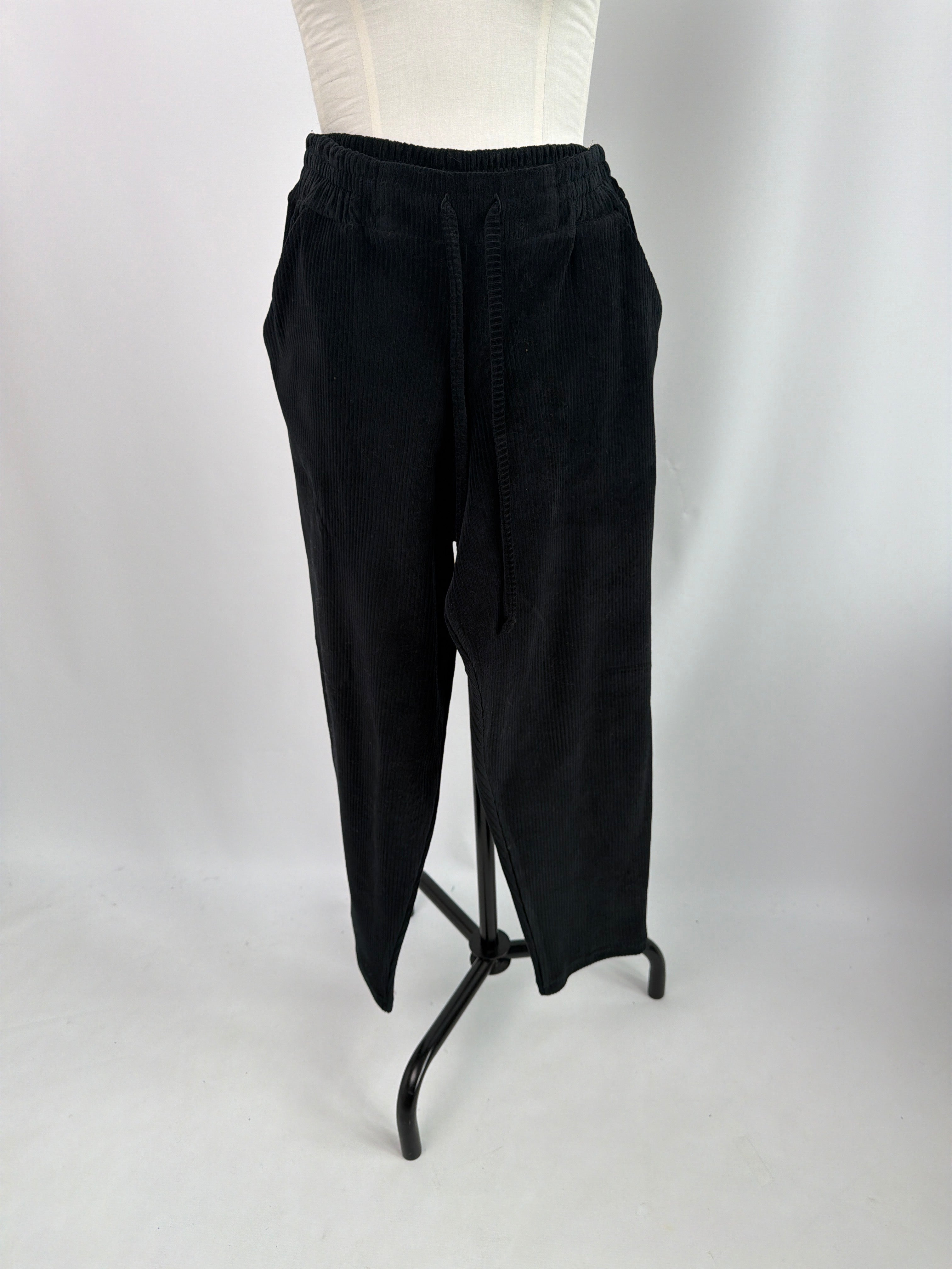 Holly | Hose mit Bindeband & schmalem Bein | Velvet-Cord schwarz Größe S Schritt -6cm, Saum -5| Einzelstück