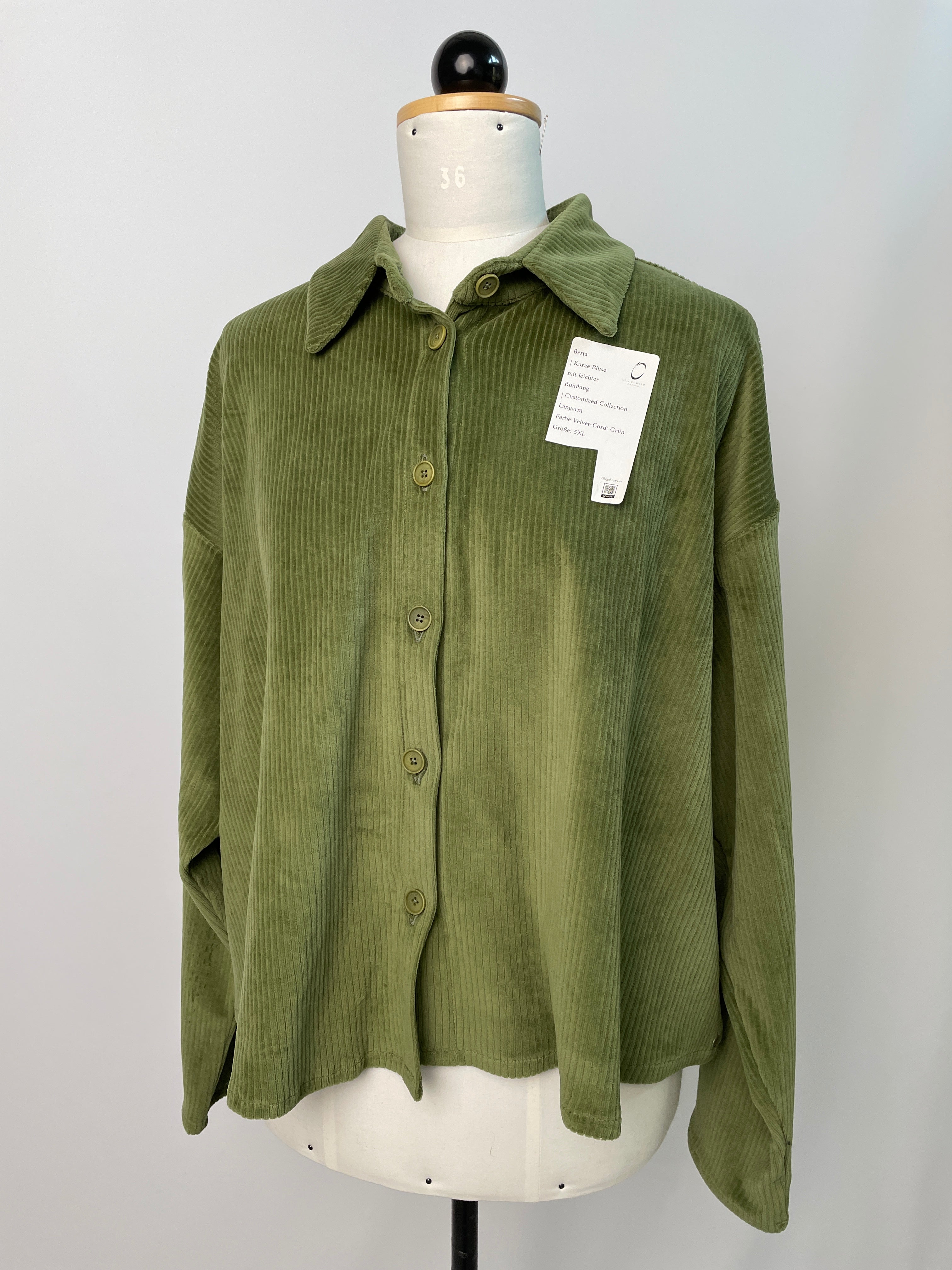 Berta | Langärmlige cropped Bluse | Velvet-Cord grün Größe 5XL | Einzelstück