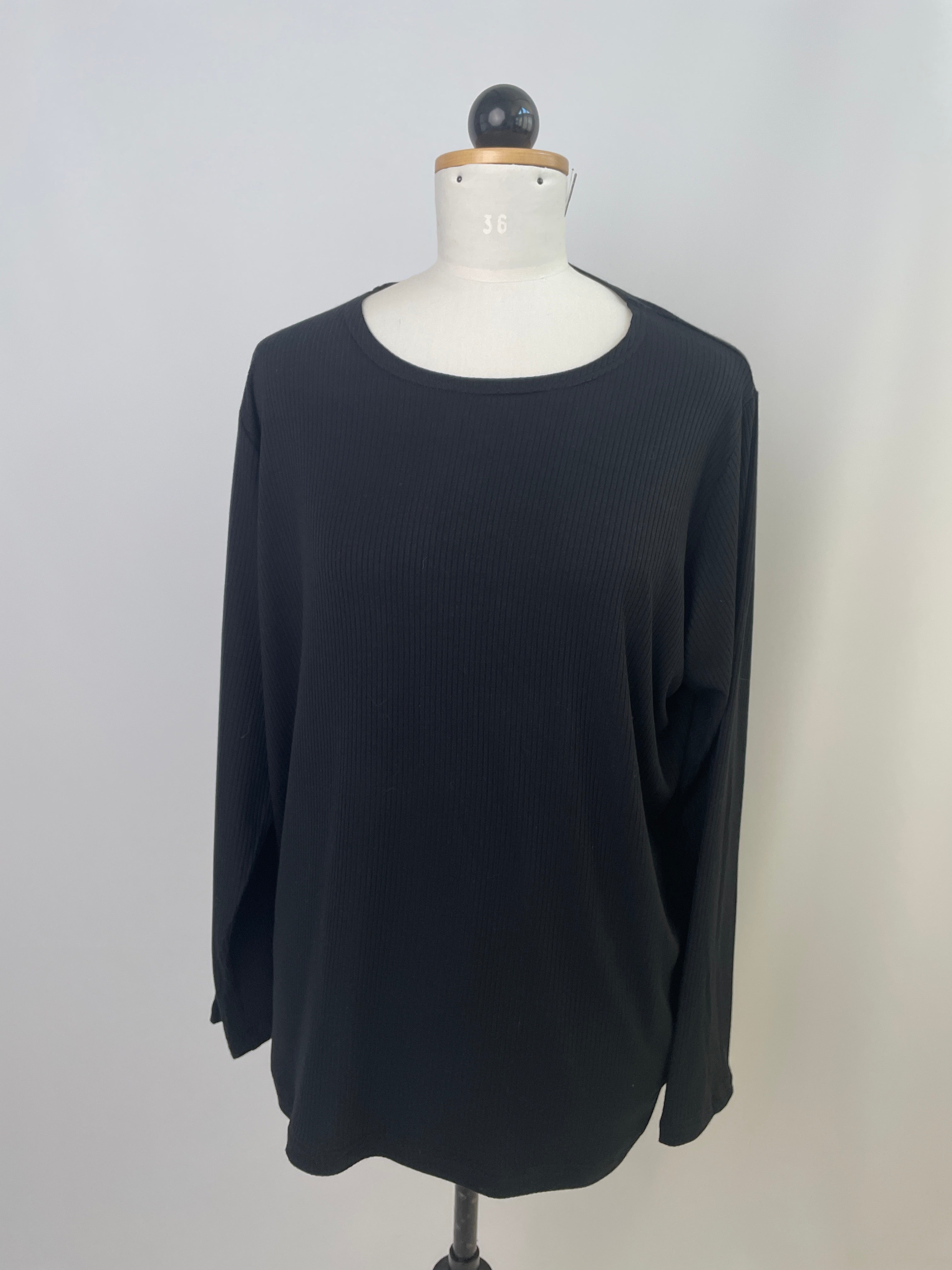 Bina | Basic-Shirt | Rundhals Langarm | Rippjersey schwarz Größe XXXL | Einzelstück