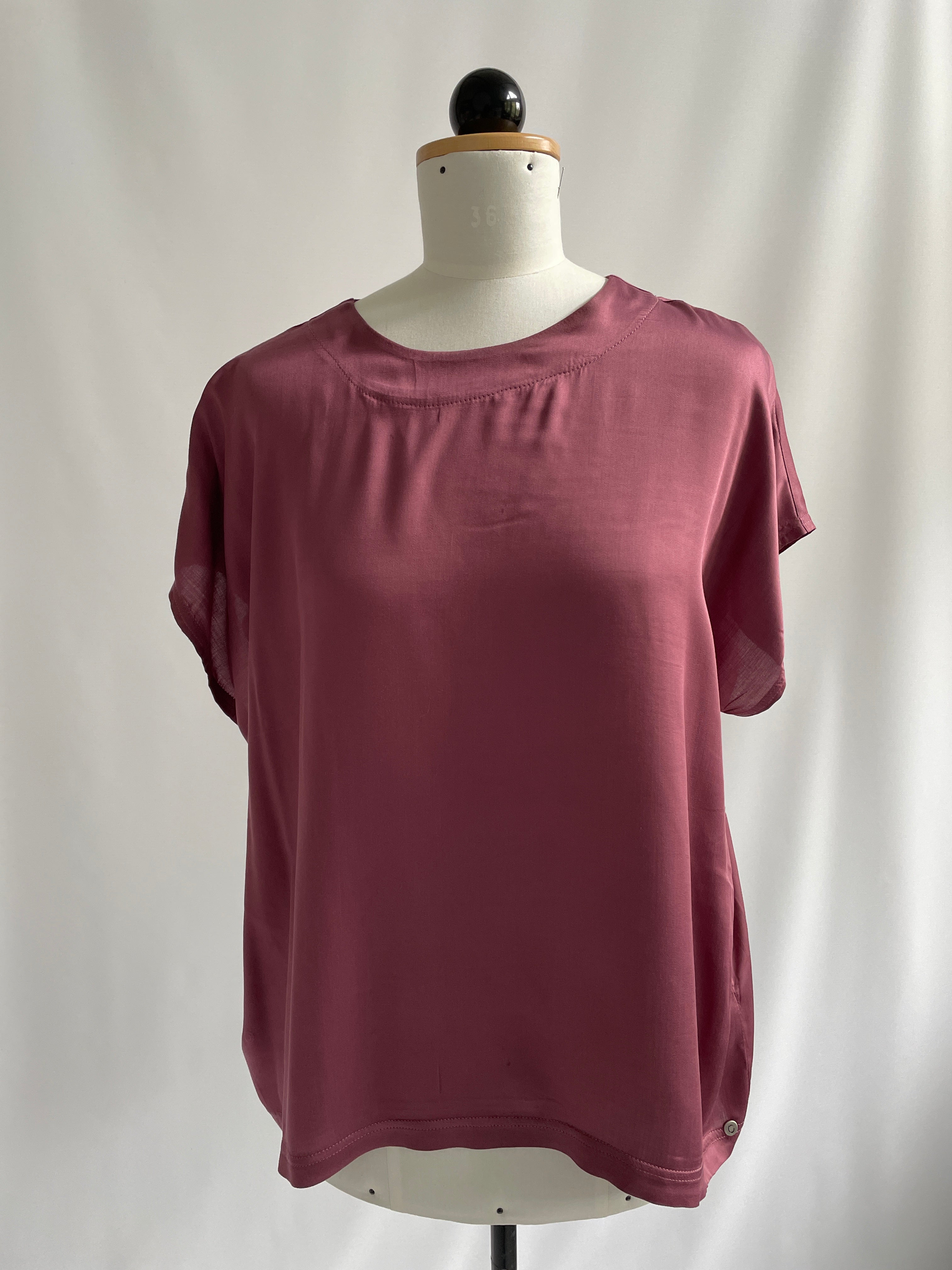 Viviane | Oversized Oberteil kurzarm | EcoVeroSatin beere Größe S | Einzelstück
