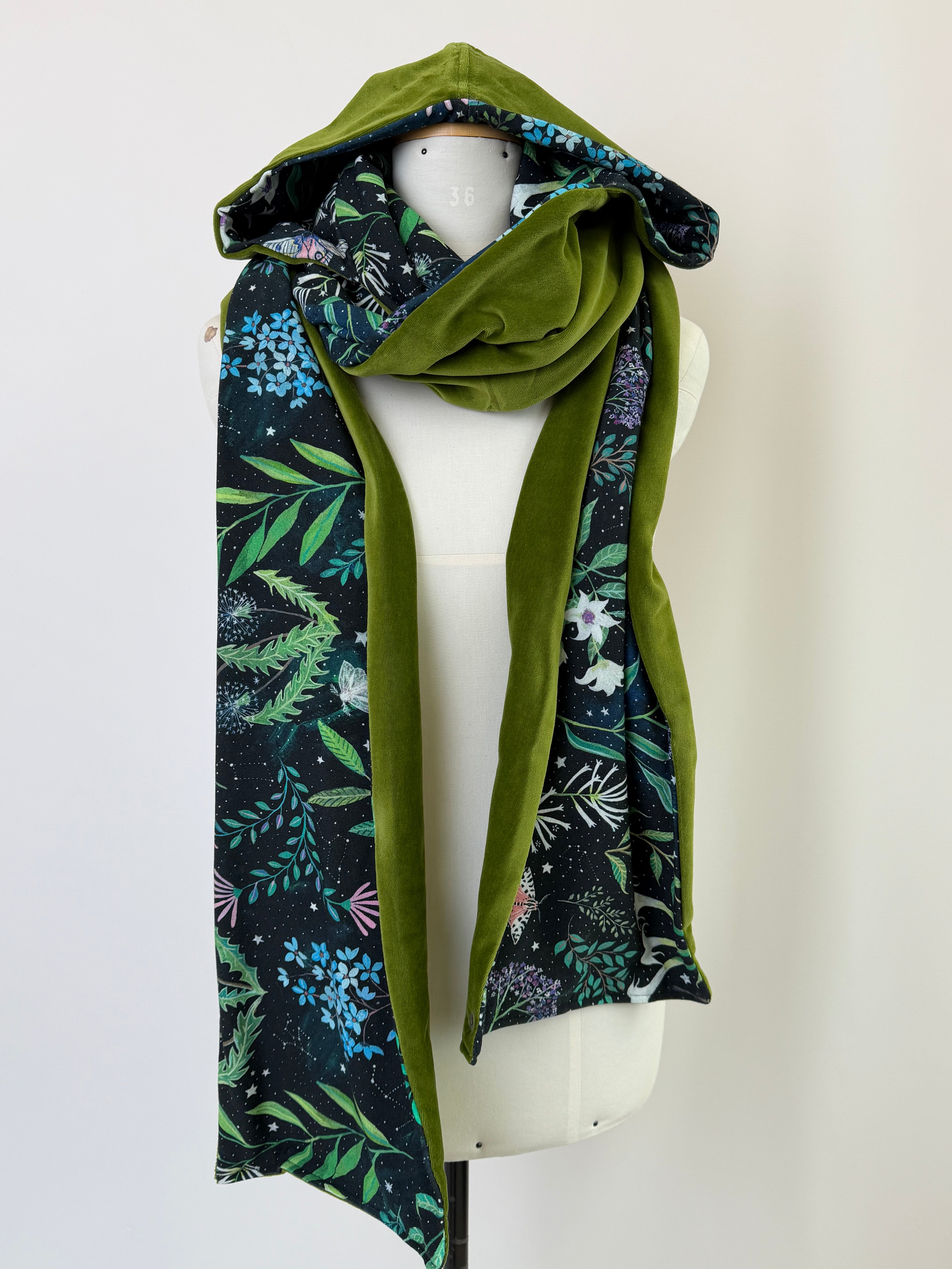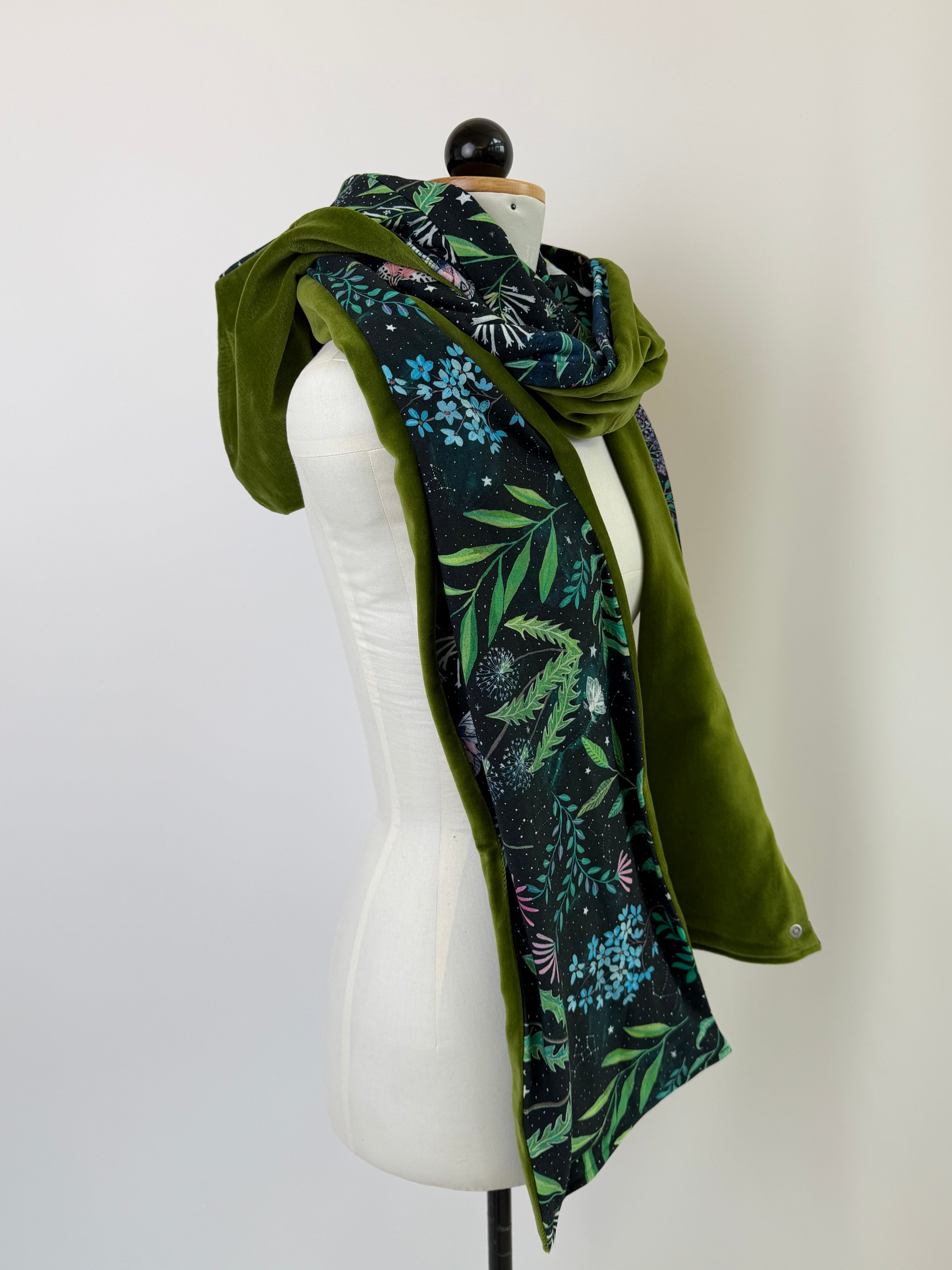 Schal-Mützel | Velvet moosgrün & Moonlight | Einzelstück
