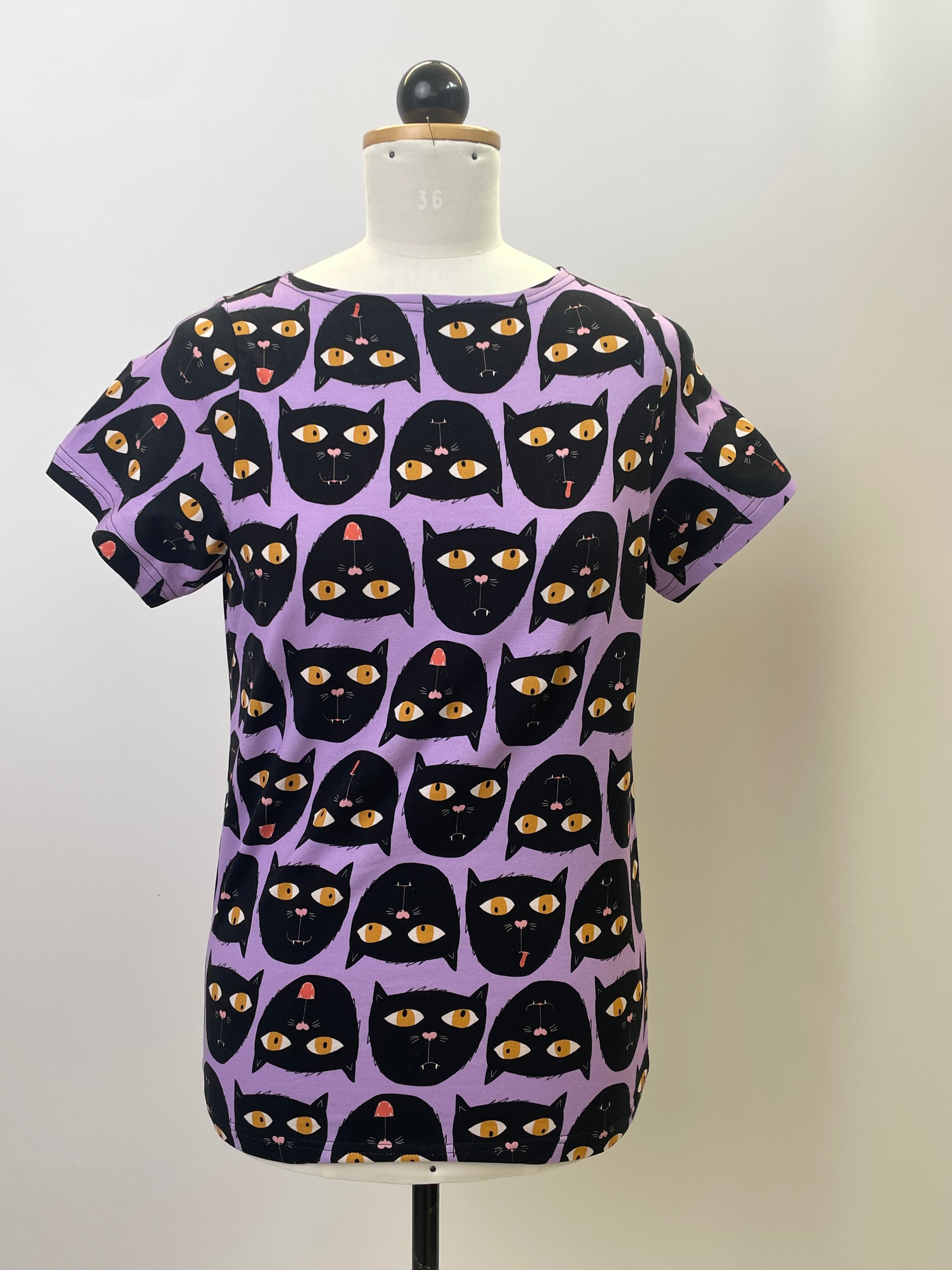 Conni | Croptop kurzarm Cats Größe XL Saum+15cm Ärmel -5cm | Einzelstück