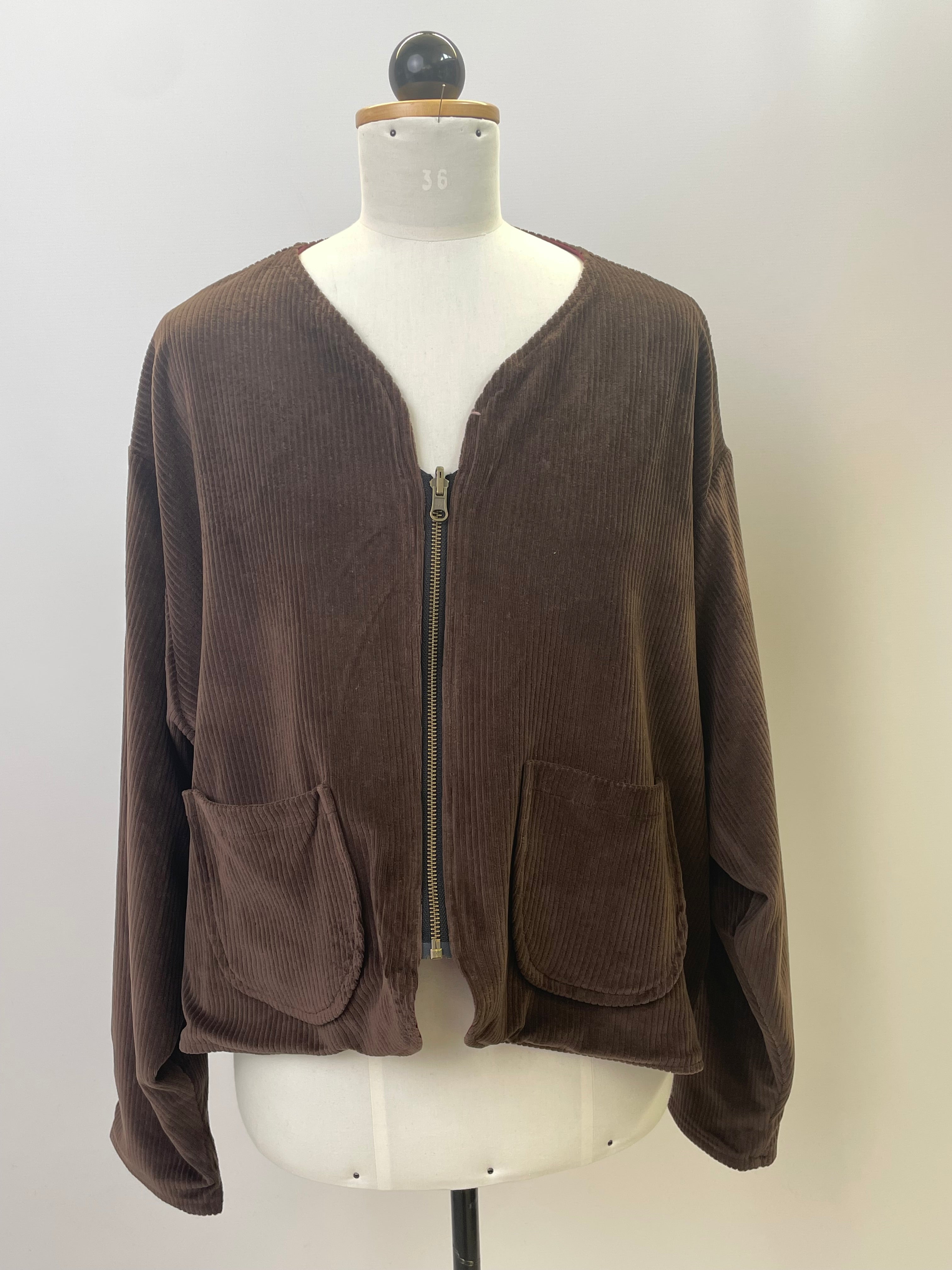 Waldemar | Kurz geschnittene Wendejacke | Velvet-Cord braun Tenceljersey burgund | Größe 6XL | Wende-Reißverschluss und Taschen | Einzelstück