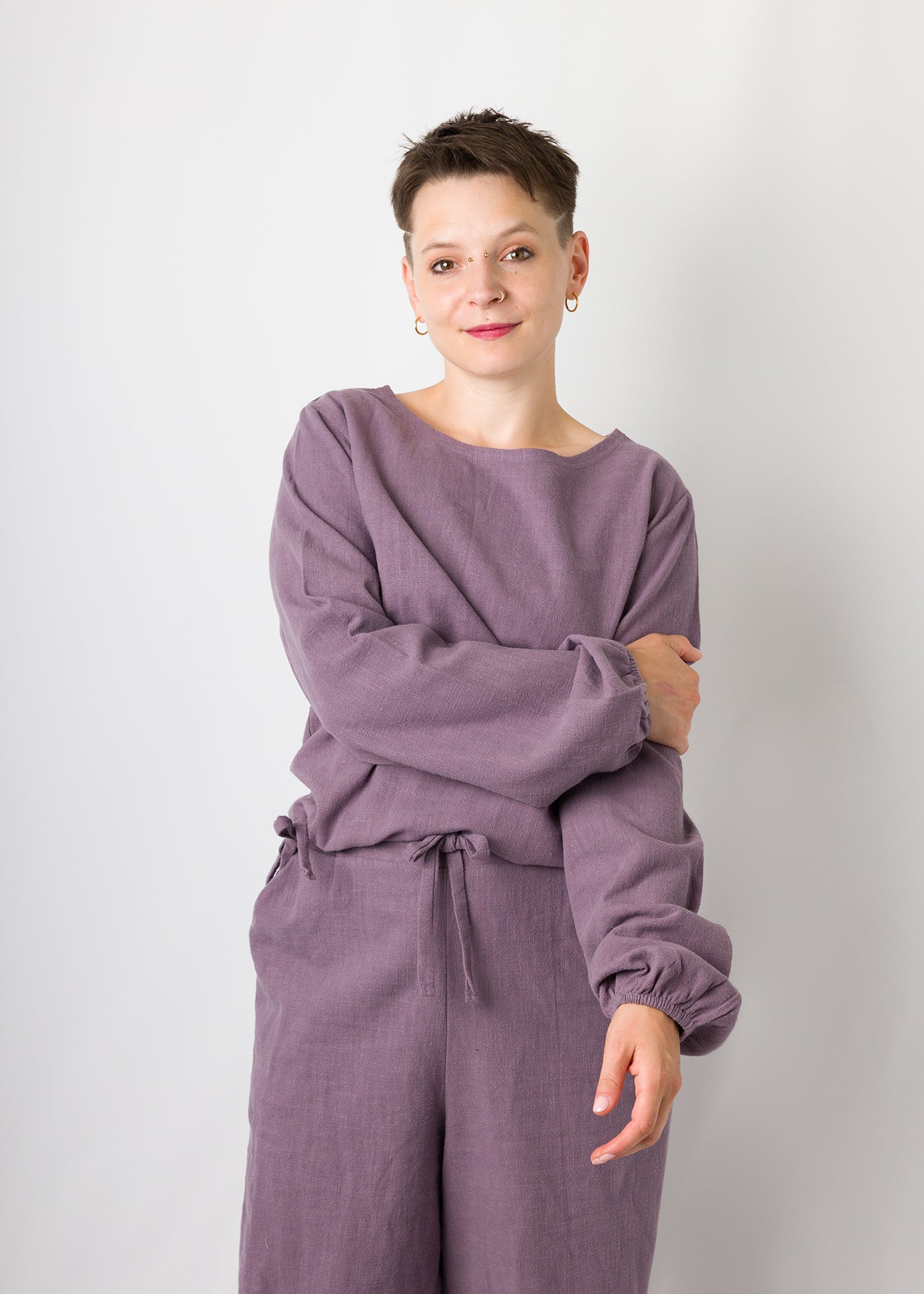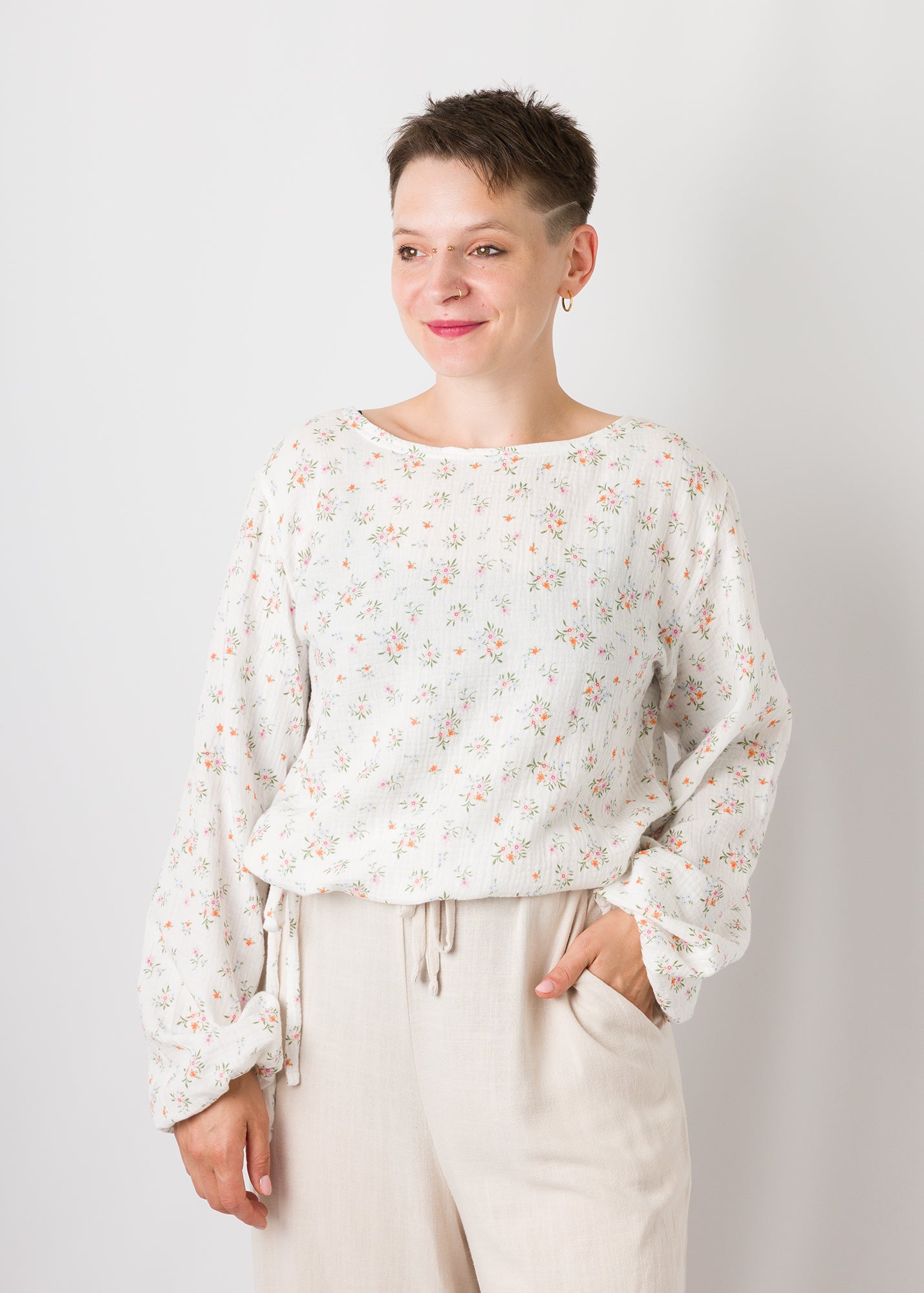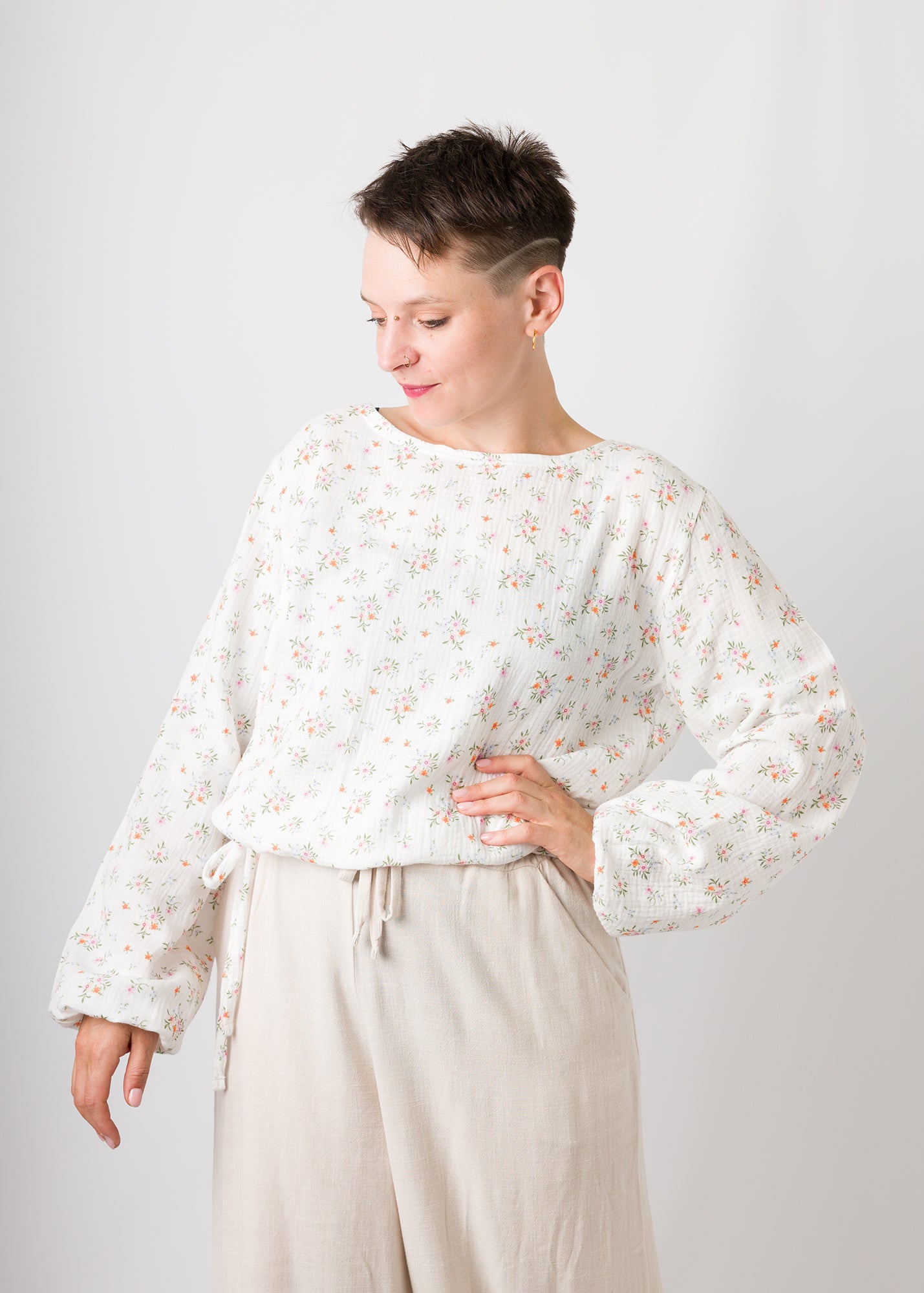 Greta | Oberteil mit Ballonärmel und Bindeband am Saum | individualisierbar