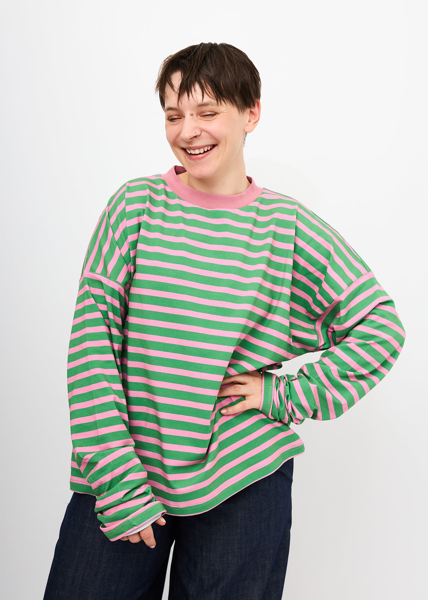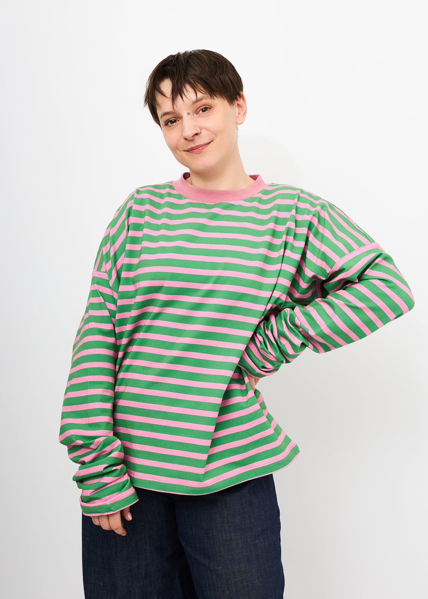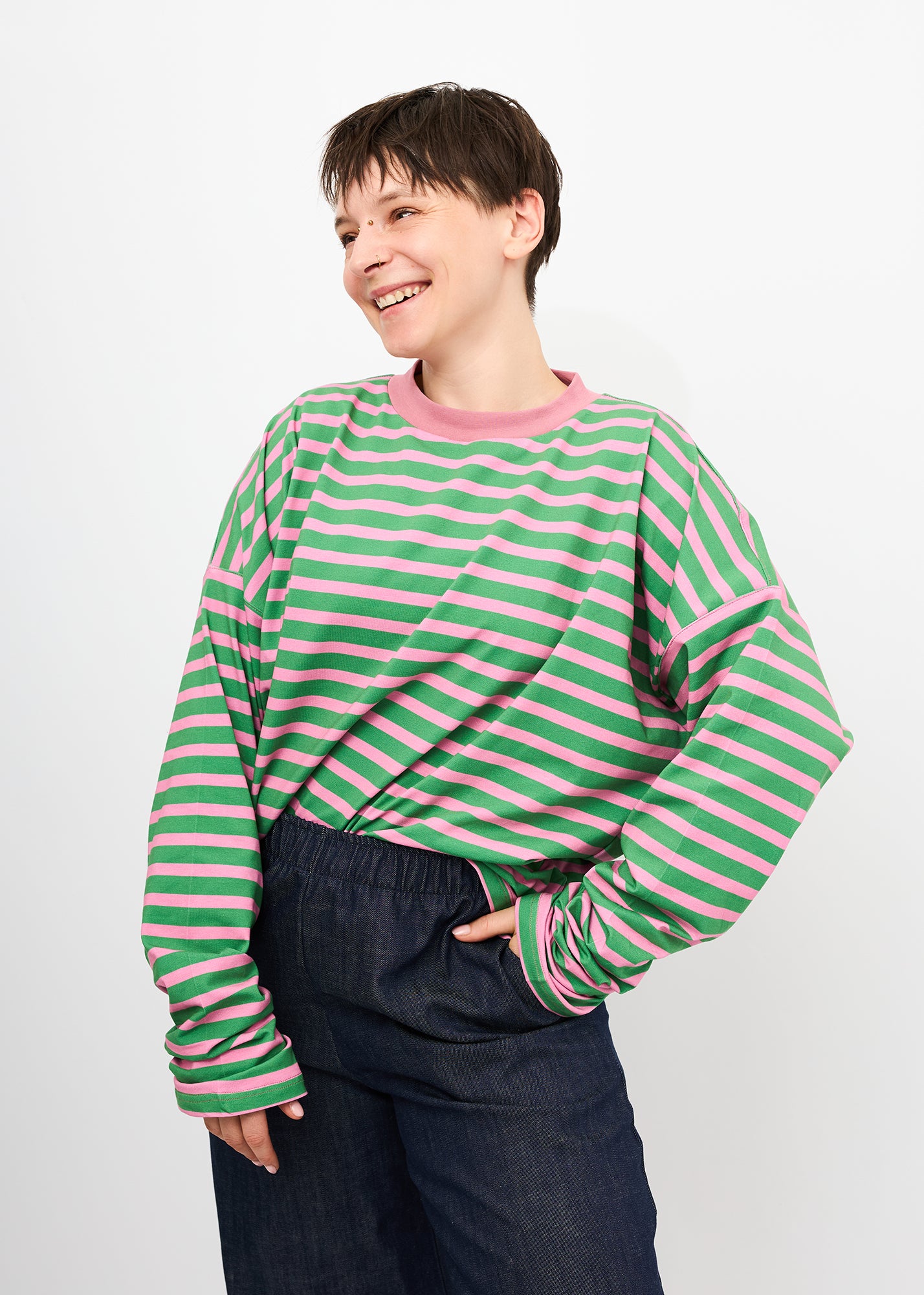 Sammy | Oversized Sweatshirt mit Raffung am Ärmel | Streifen grün