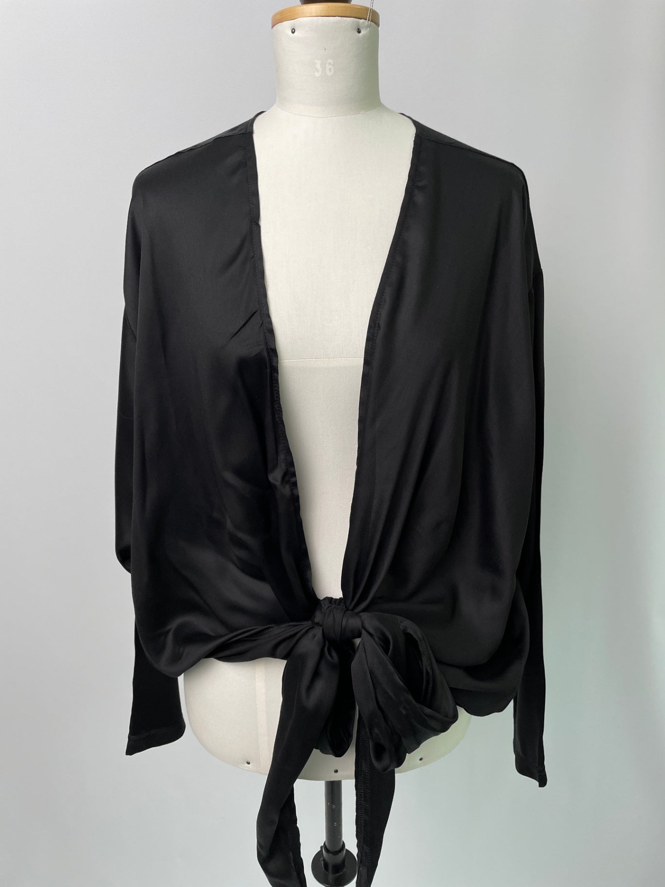 Winja | Vielseitige Wickelbluse | Langarm | EcoVero Satin Schwarz | Größe: 3 | Second Love