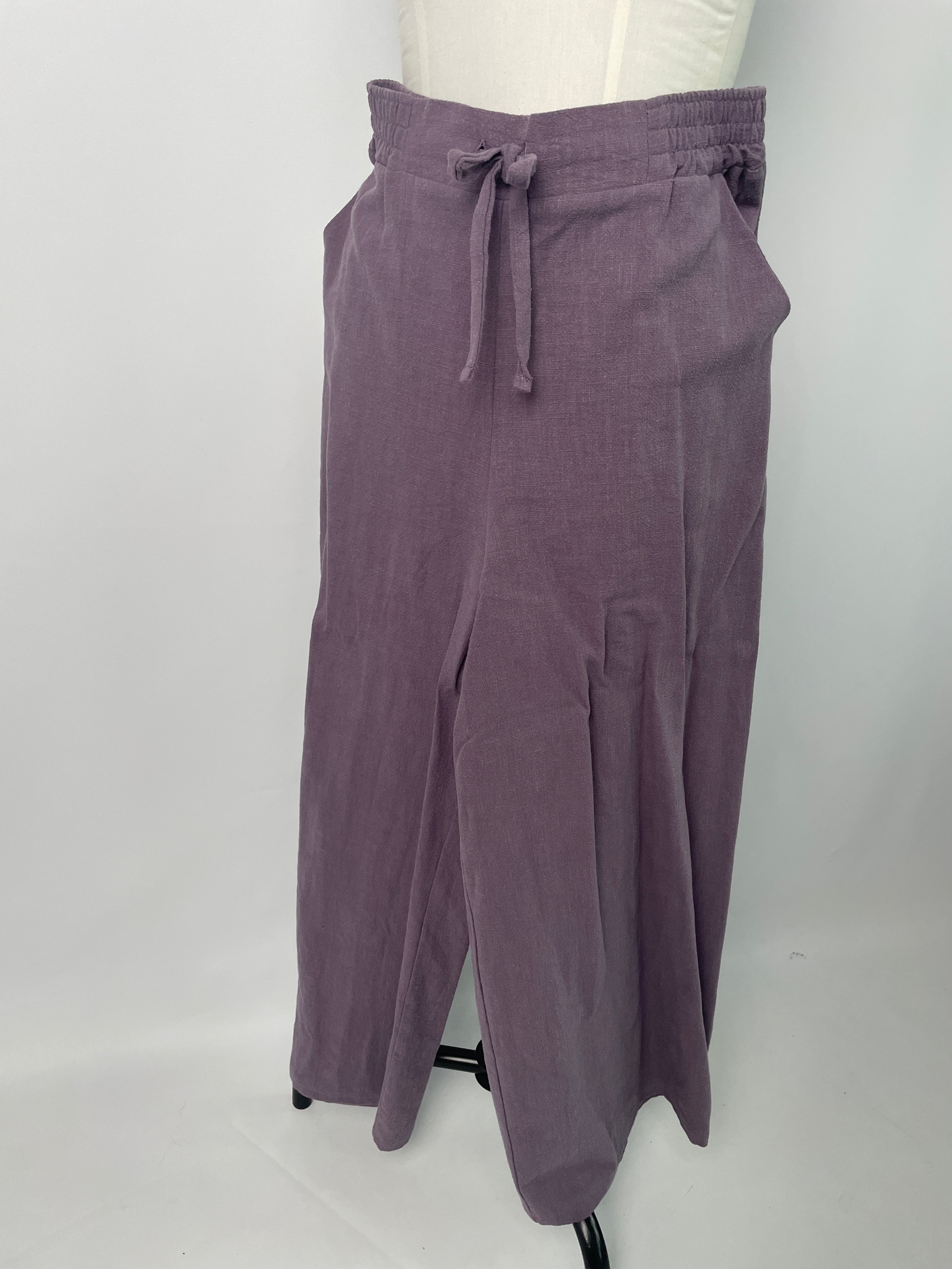 Holly | Hose mit Bindeband & weitem Bein | Leinen gewebt pflaume Größe M | Einzelstück