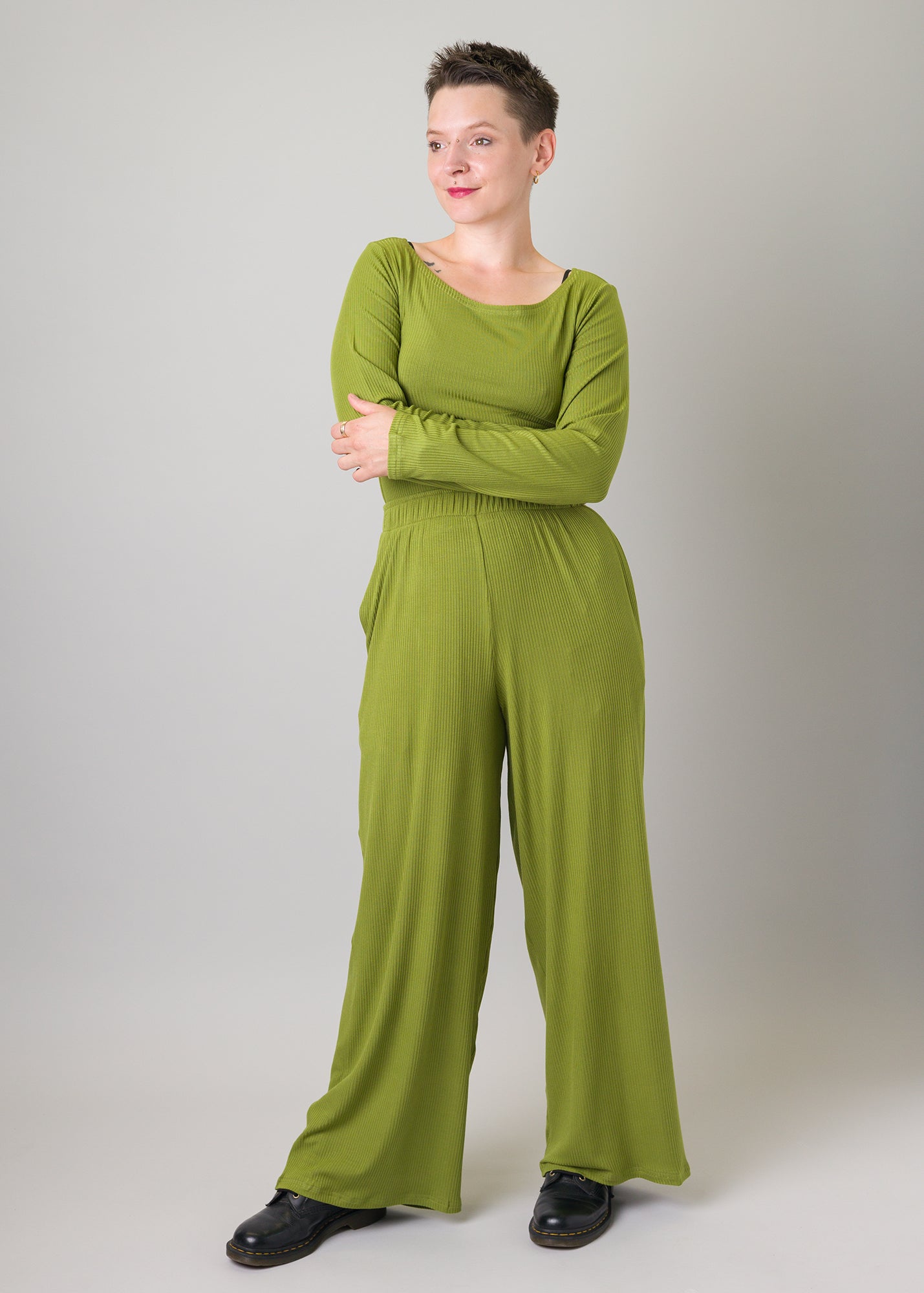 Marlenehose Rippjersey grüner Tee Größe XS | Einzelstück