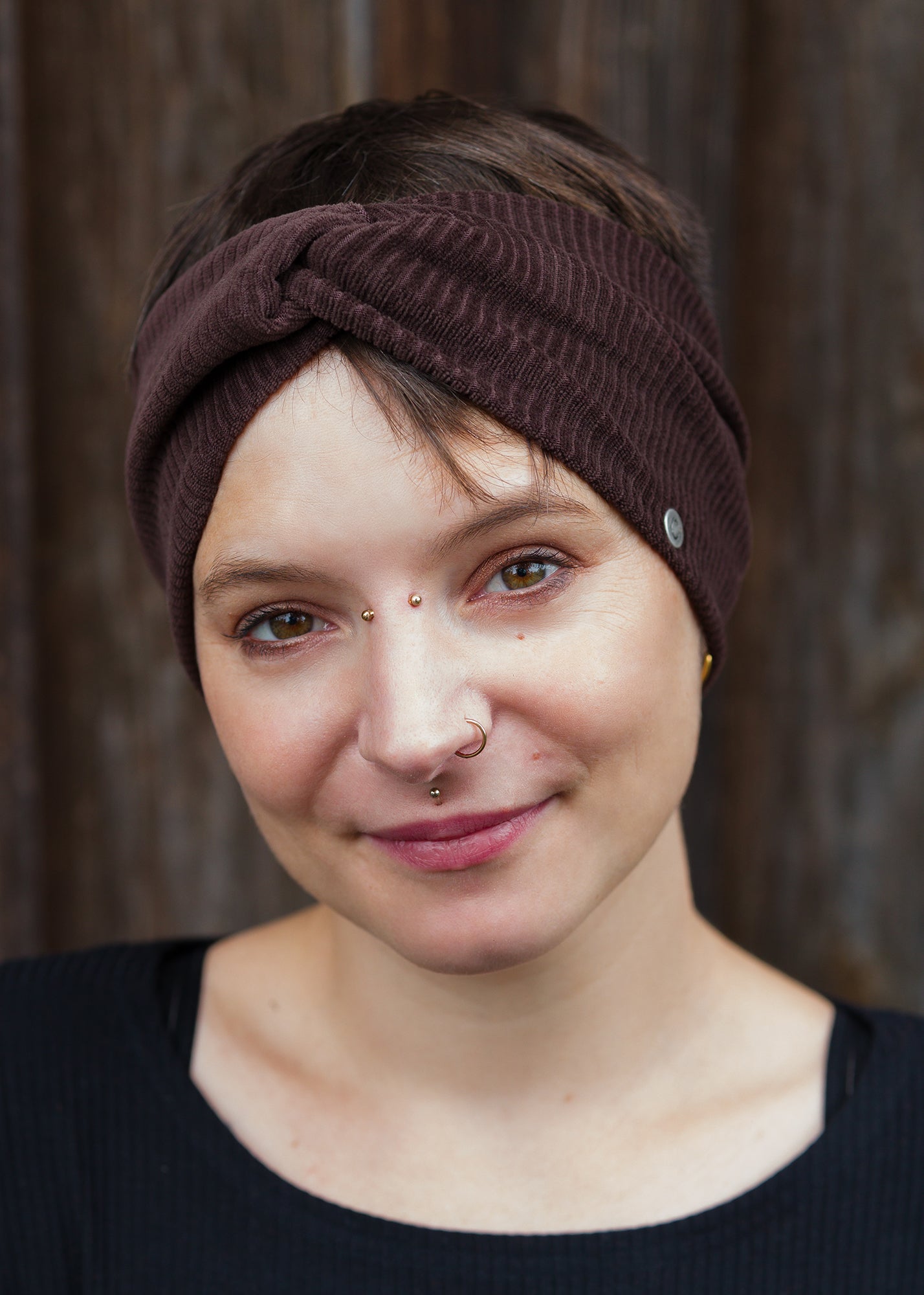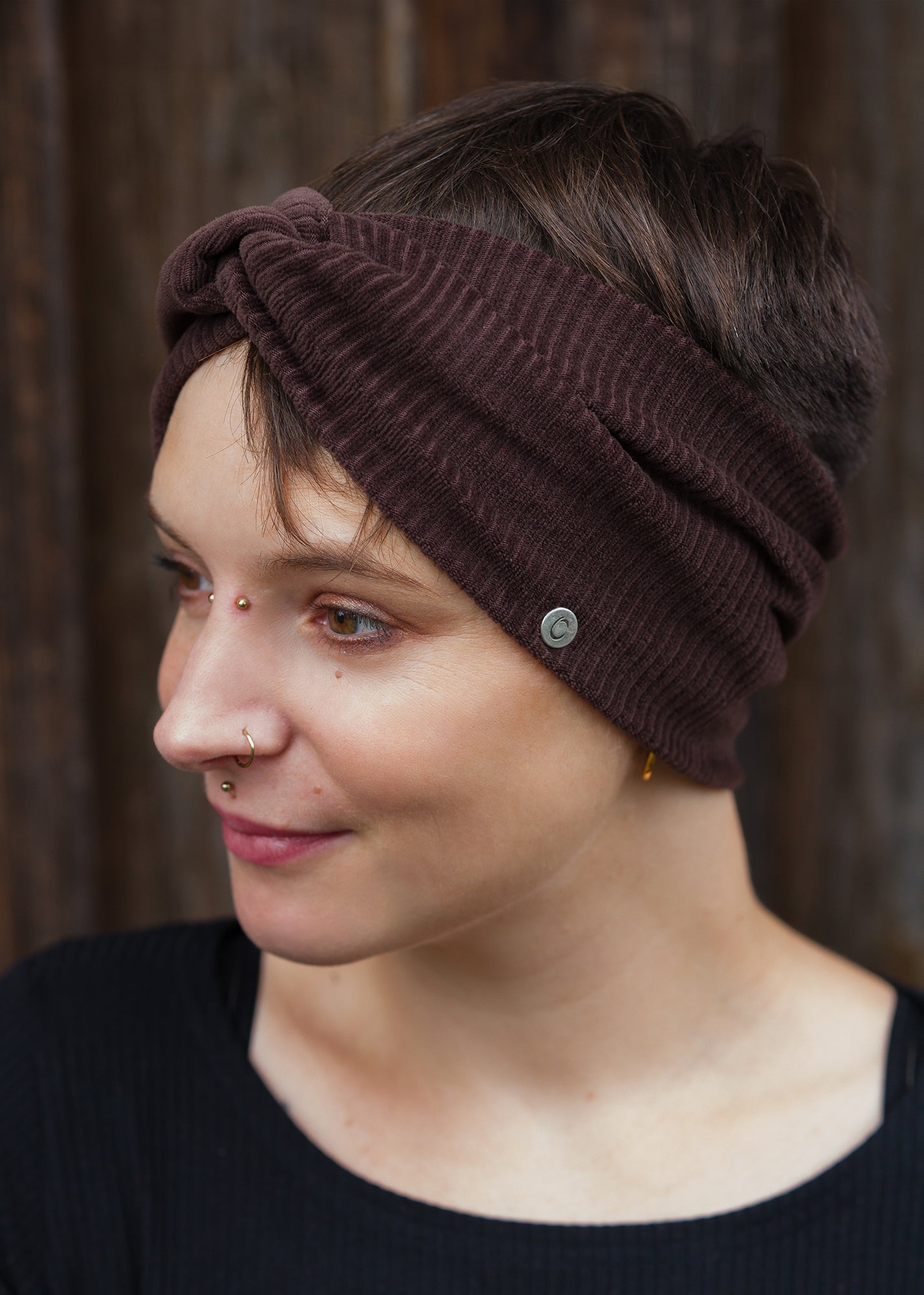 Schmales Turbanstirnband | braun | Velvet-Cord