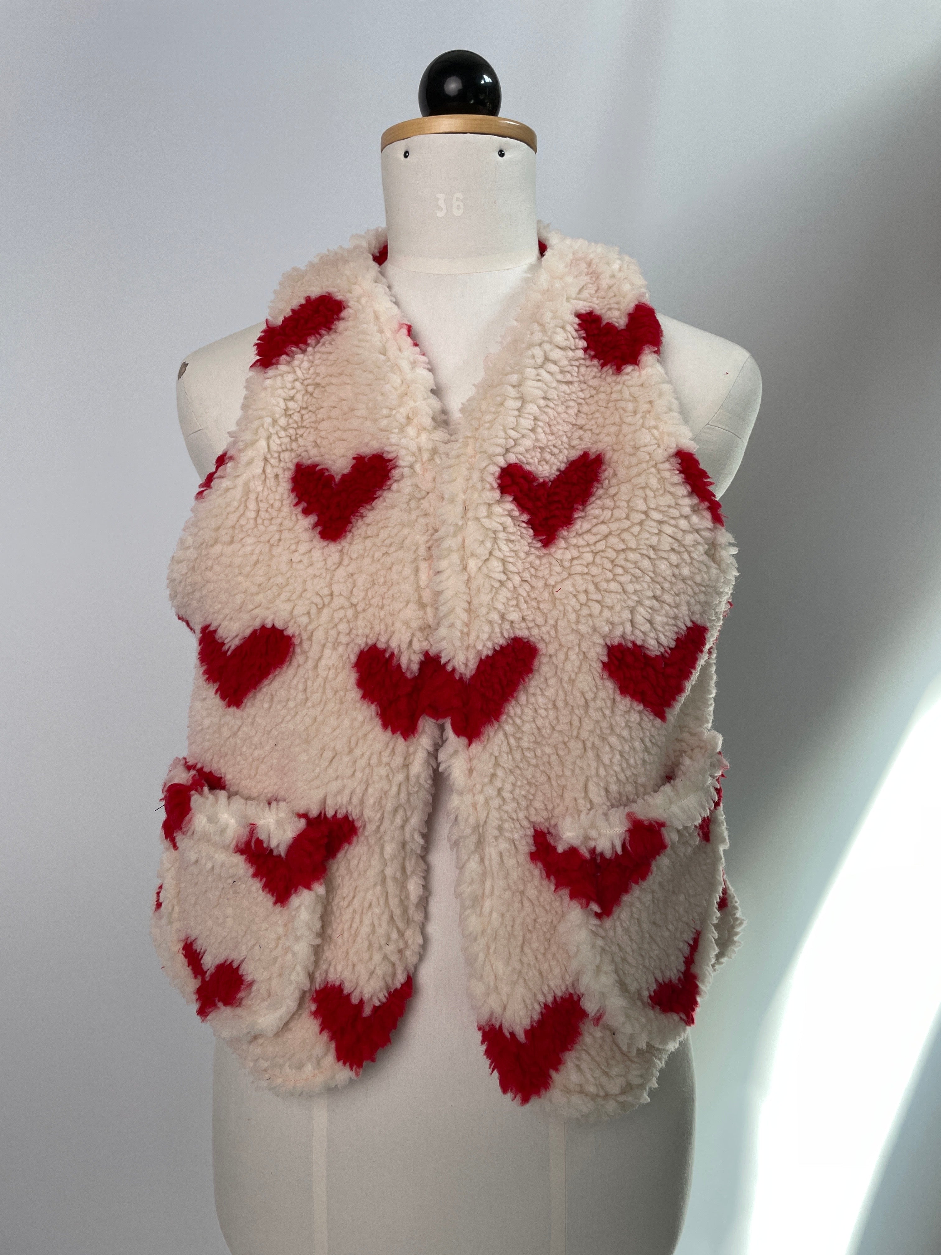 Wende-Waltraut Plüsch Herzchen weiß-rot/Musselin rot Größe XXS/XS | mit Taschen | Einzelstück